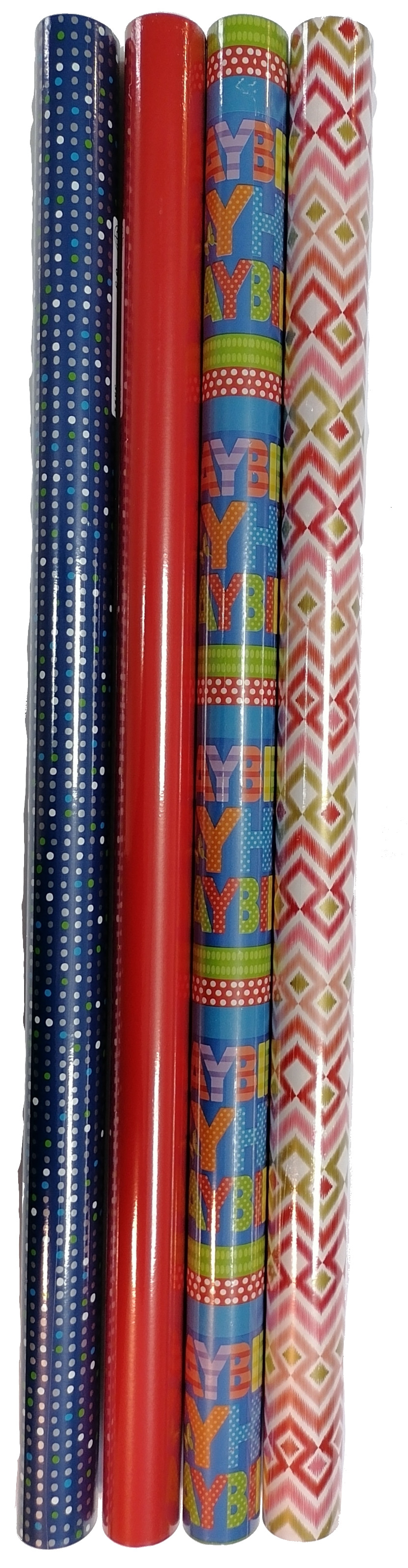 Ukrasni papir premium kvaliteta, sa jednobojnom štampom na poledjini, 80g/m2. Pakovanje: 25 rolni, mix 5 motiva.