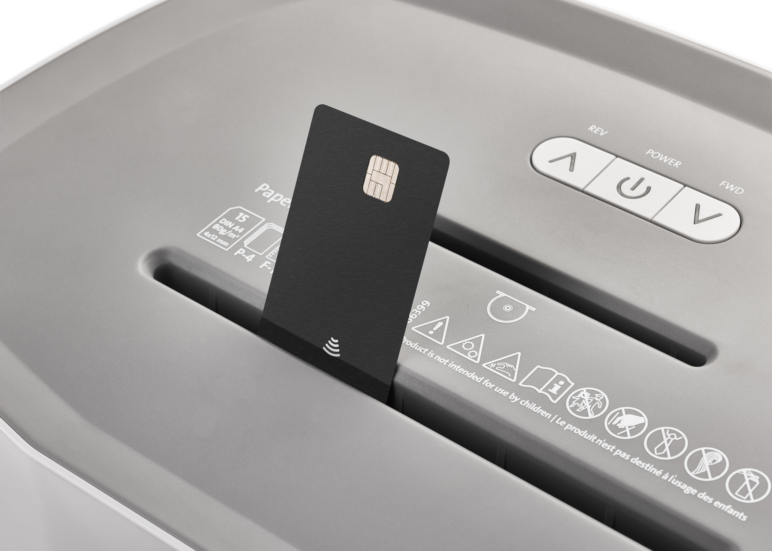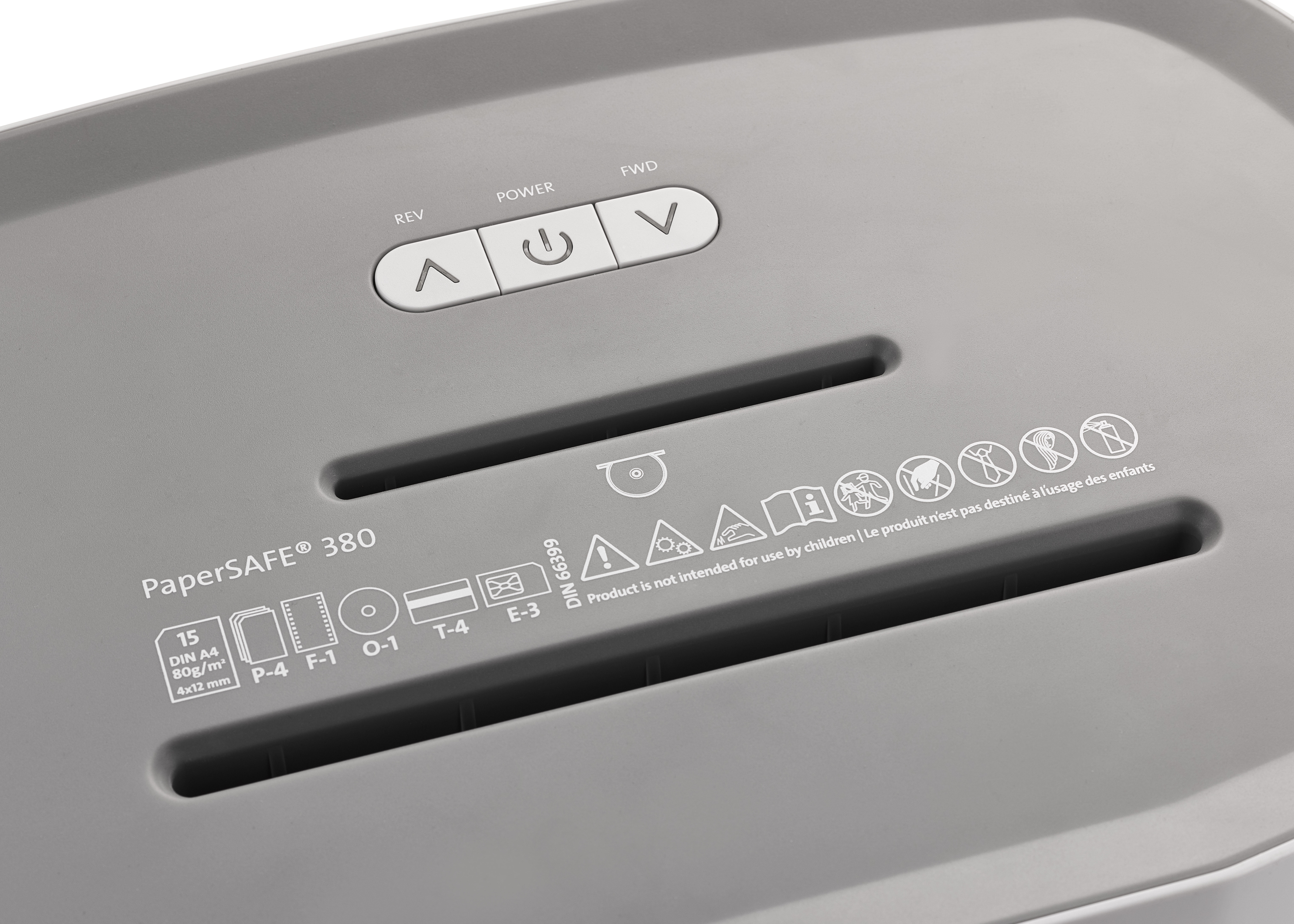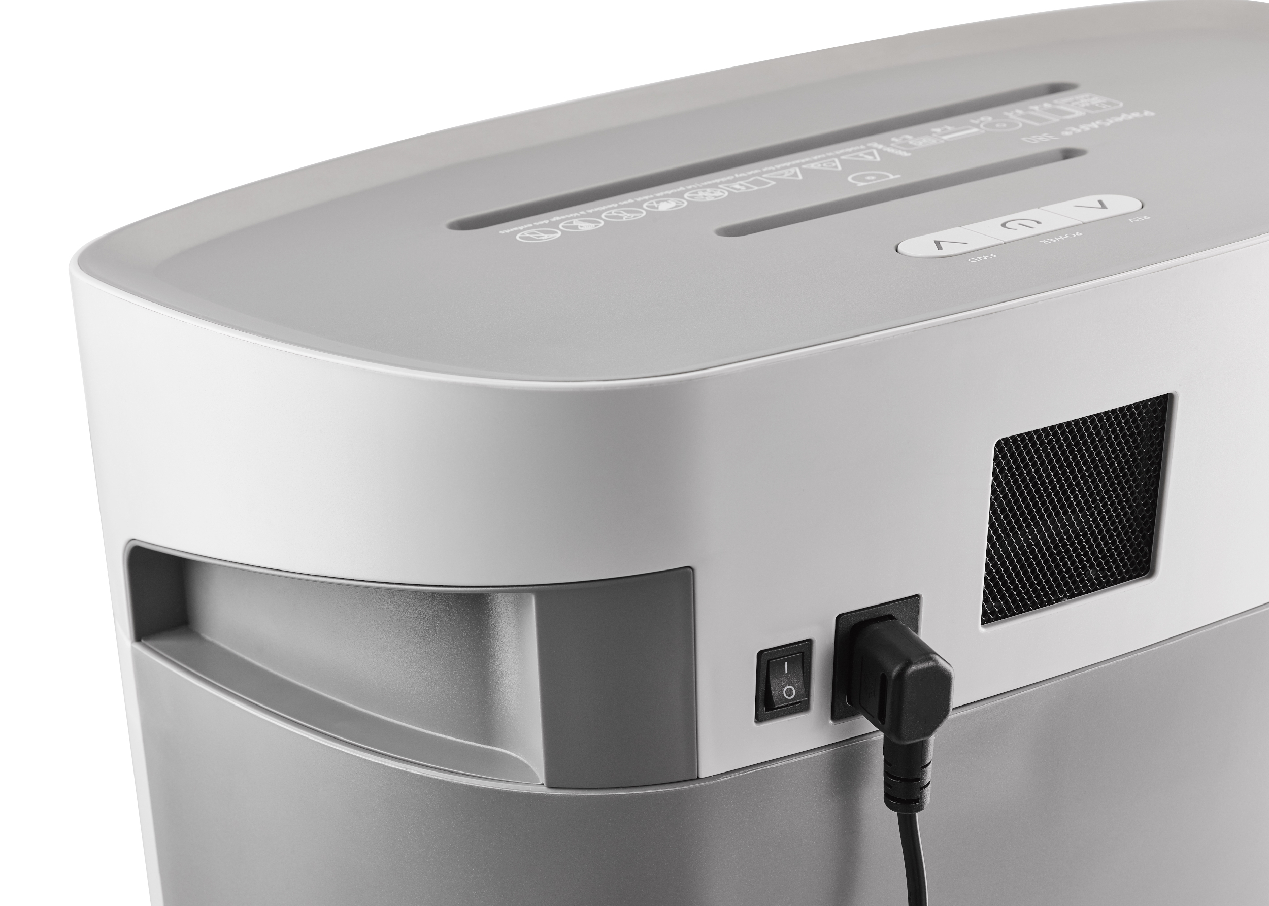 - Korpa za uništeni materijal se može vaditi, i sadrži odvojen prostor za materijal od uništenih CD-ova/kreditnih kartica za lako upravljanje otpadom.