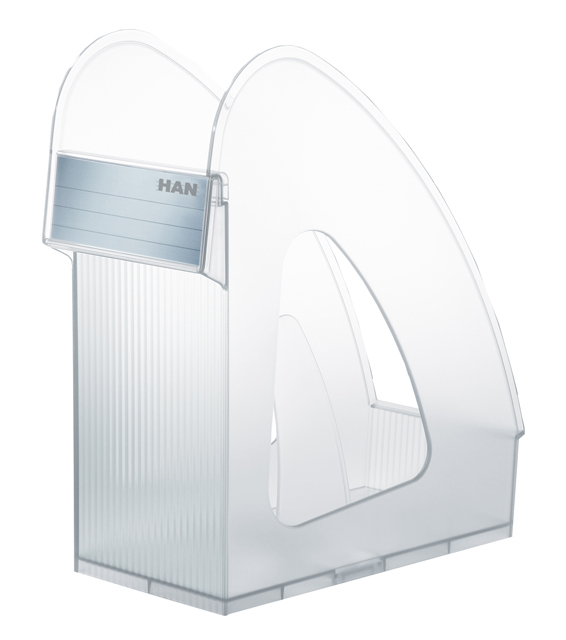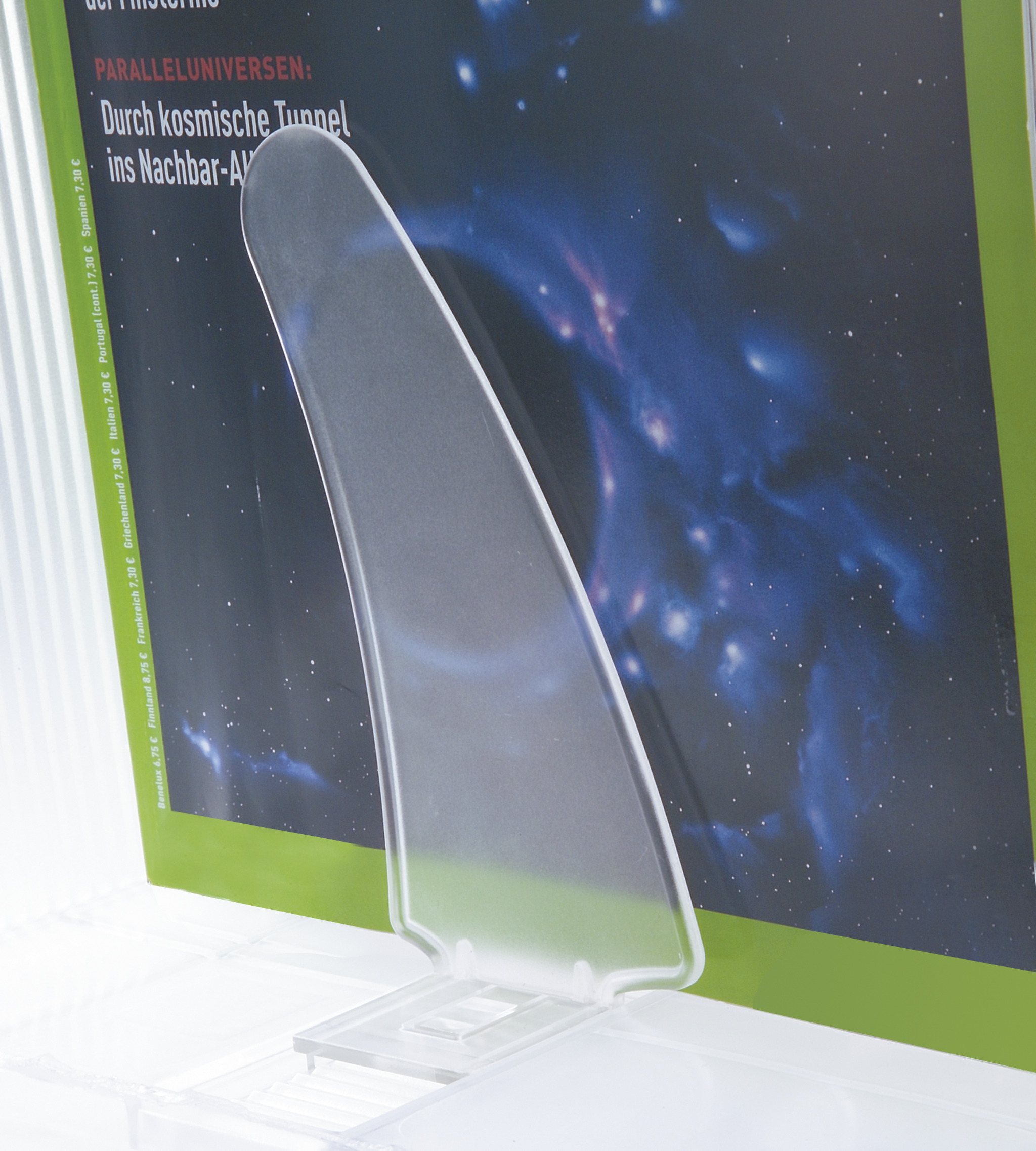 Visokokvalitetni držač/organajzer kataloga iz GALAXY transparent kolekcije sa izuzetno velikim kapacitetom i sa ugrađenim pomičnim separatorom. Pogodan za čuvanje dokumenata do DIN A4/C4. Kapacitet: 113 mm. Izrađen je od visokokvalitetne plastike (polistiren PS).