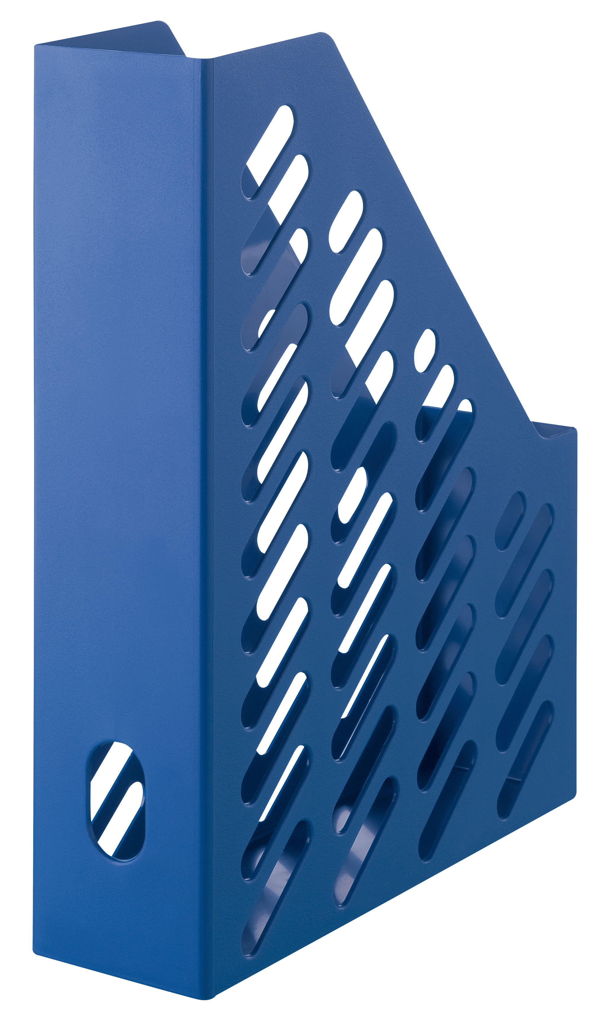 Uspravni držač/organajzer kataloga iz KLASSIK kolekcije, dostupan u nekoliko različitih boja. Ekstra visoka prednja strana za bezbedno držanje dokumenata. Nastao je reciklažom plastičnih proizvoda koji su već bili u upotrebi (80-100%). Pogodan za čuvanje dokumenata do DIN A4/C4. Kapacitet: 70 mm. Materijal: 80-100% reciklirani materijal. Boja: eko-plava.